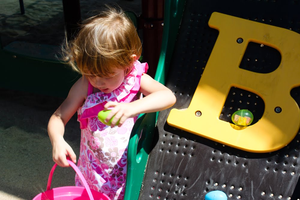 We had so much fun this year for Easter. Between school, playgroup and neighbors the girls went to three egg hunts each. But I love it! There is something about seeing eggs strewn lazily around some grass that makes me smile.